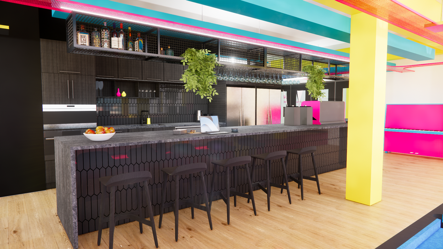 VML wanted a fun, vibrant and cohesive look for their new Headquarters. CMYK was the brief, so we had fun adding splashes of Cyan, Magenta, Yellow and Black throughout the offices, board rooms, collaborative spaces. Our fun-loving clients put particular emphasis on the breakout / recreational zone, which features a full kitchen/bar, a hot pink putting green and piano to match.
